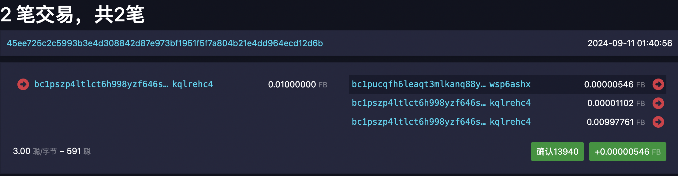 可以看到这笔交易bc1pucq...ashx这个 utxo 就是对应了 commit。然后剩下的两笔指向bc1pszp...rehc4的交易,第一笔是用于支付下面reveal阶段的 gas 费,另一笔则是找零。