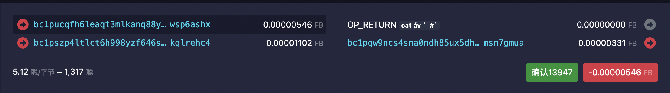 - 如果想要查看 mint 的当前情况,可以搜索 OP_RETURN 中数据带有 cat 的交易就好。