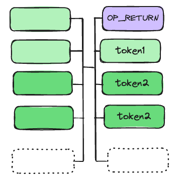 在 OP_RETURN 中存储的是当前交易输出状态的 Hash,在合约中会存储 Token 剩余的 Mint 次数。每次 Mint 之后,新生成的 Minter 的 mint 数量会等于剩余可以 mint 的数量除以二。用图表示: